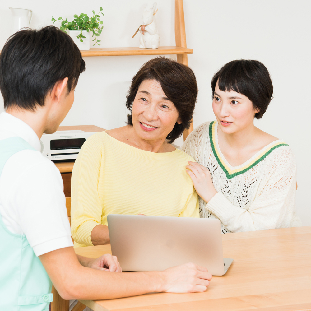 介護支援専門員がご自宅へお伺いし、ご利用者様ご家族様に面談して行います。