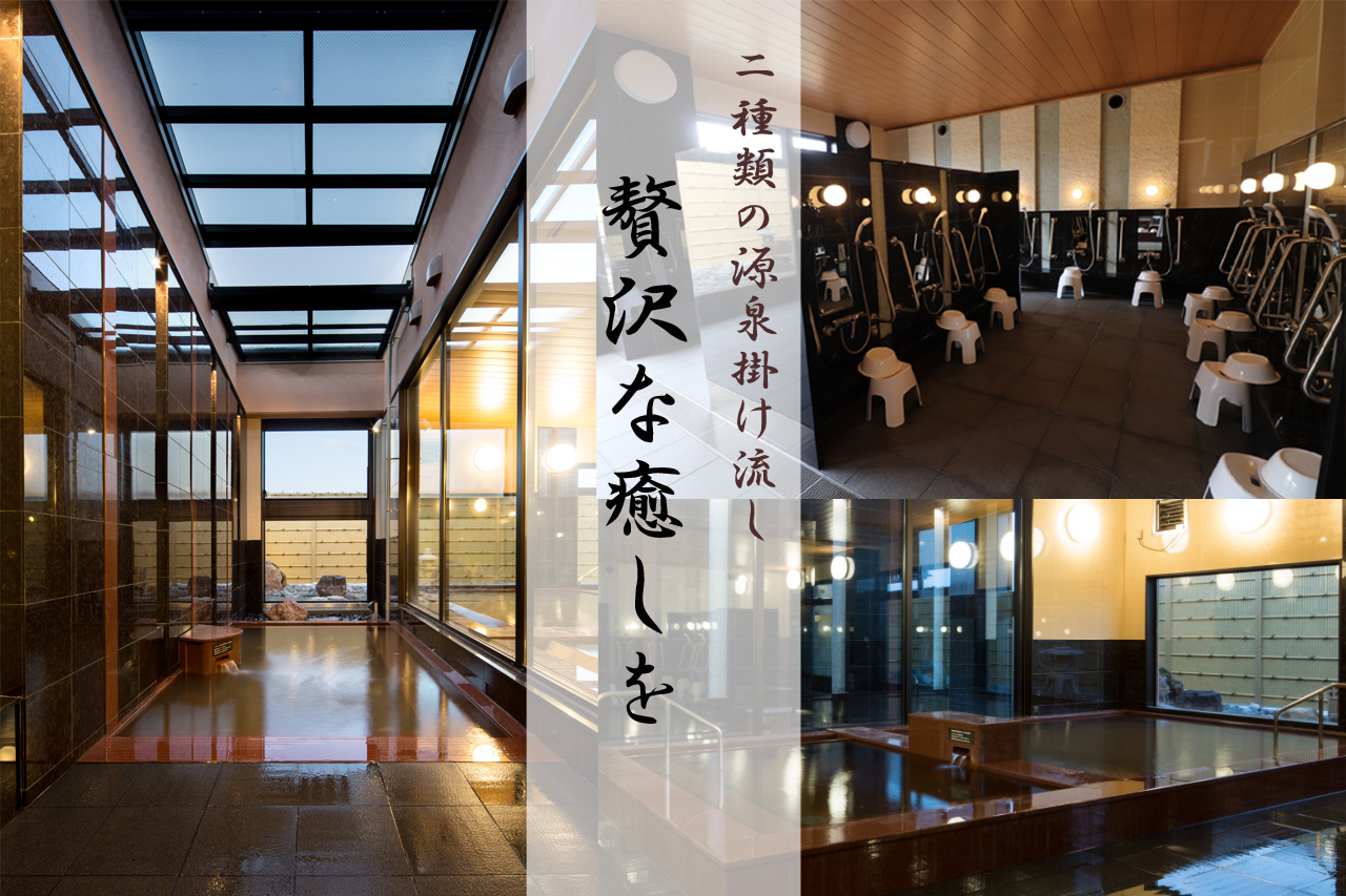 2種類の天然温泉で3浴槽(大・中・露天)あり
