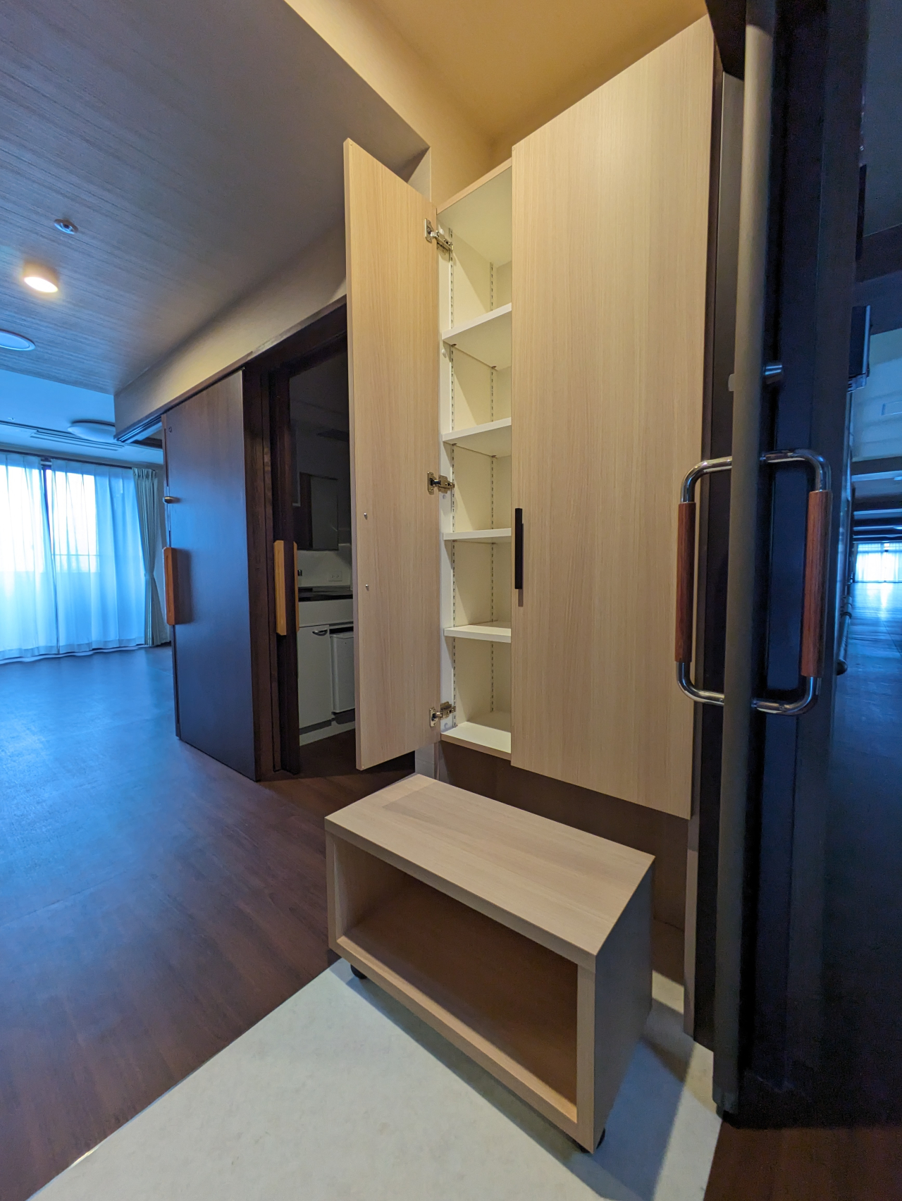 玄関には、備え付けの下駄箱があります。収納たっぷりの大きな作りとなっております。