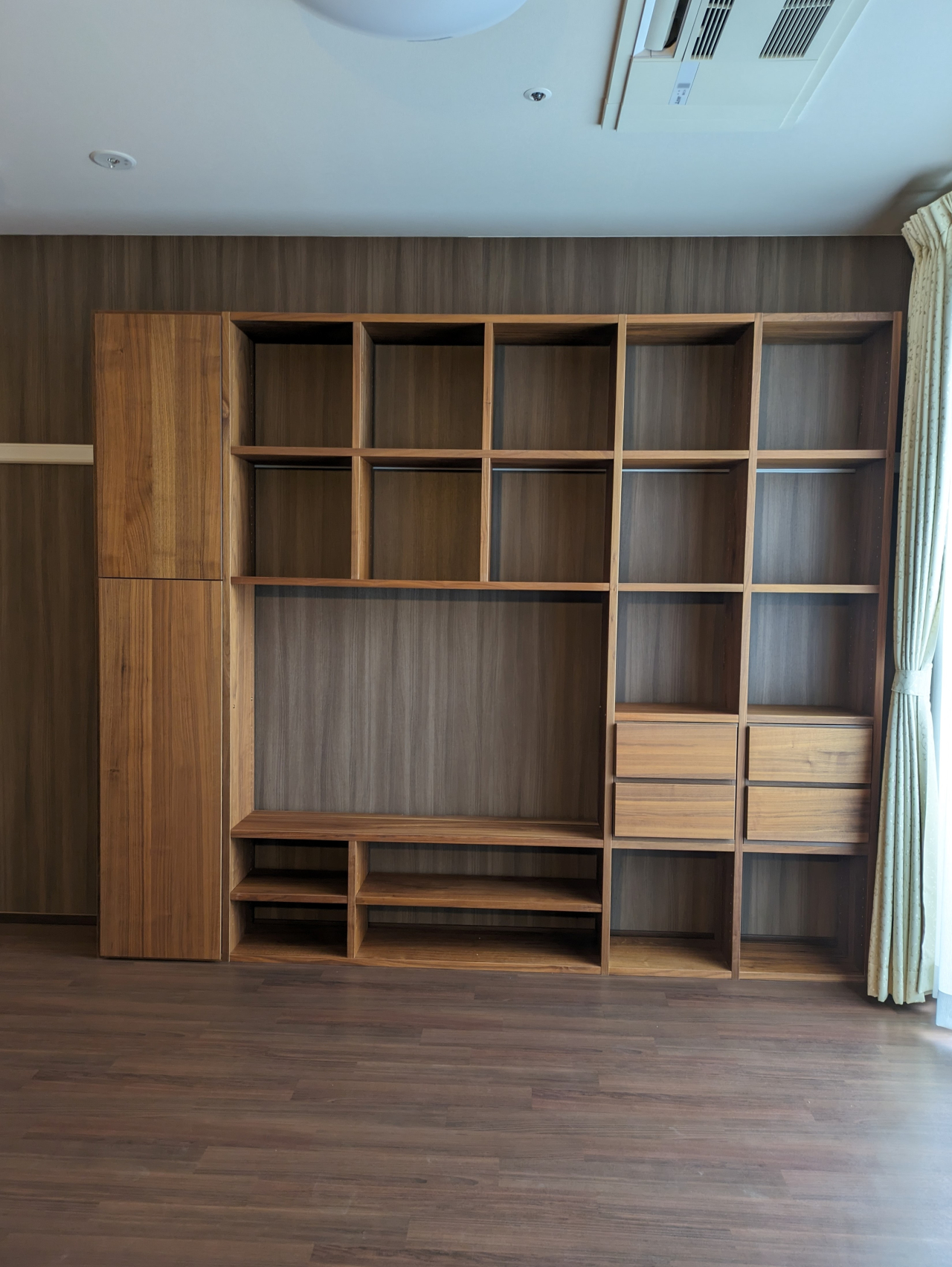 大きな飾り棚にはテレビも設置可能です。大好きなインテリアを飾ったり、本棚として利用したり、ご自由にお使いいただけます。