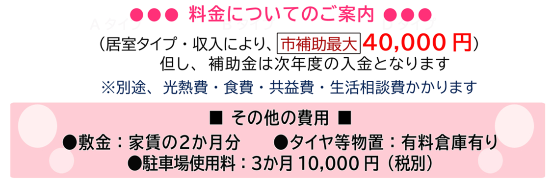 ※別途、光熱費・食費・共益費・生活相談費がかかります