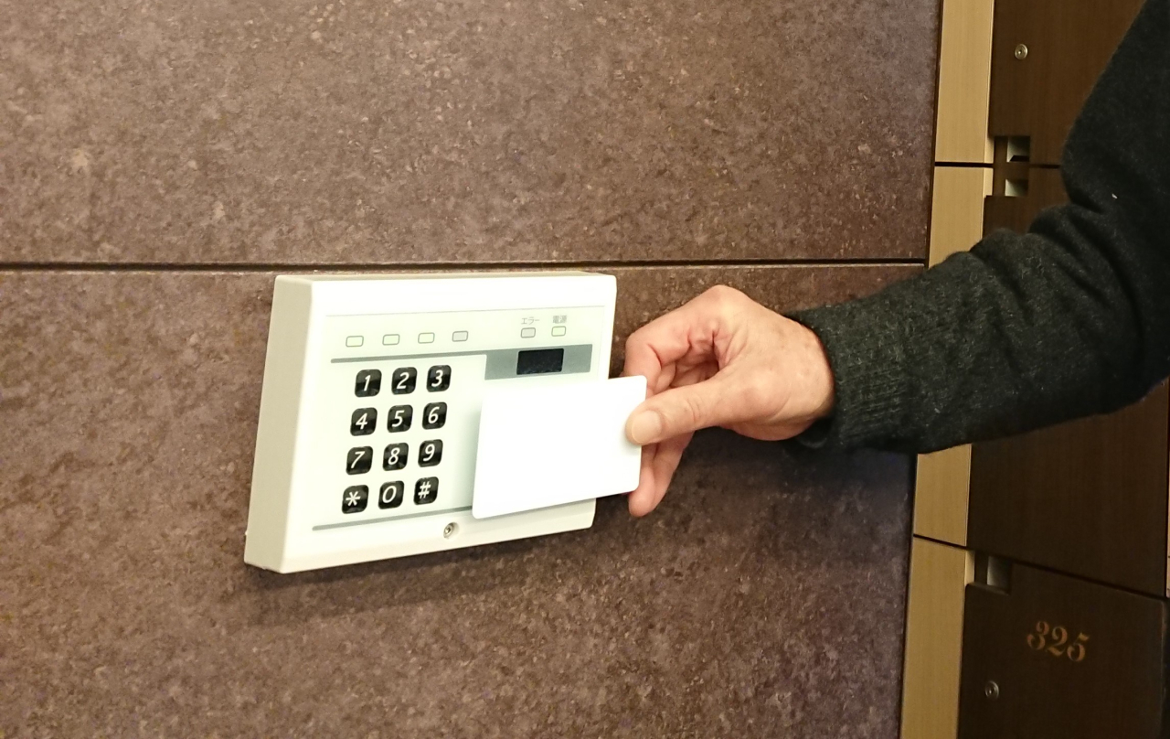 正面玄関はカードキーを採用しており、門限なく24時間出入り可能となっております。防犯カメラも各箇所に多数設置してあり、セキュリティ対策もバッチリです。