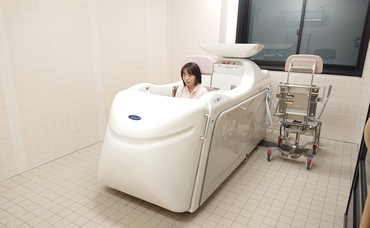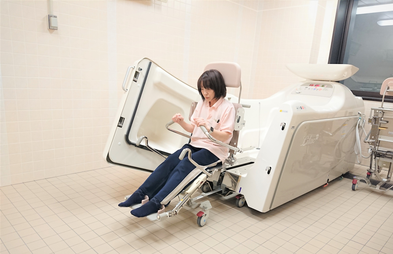 居室での入浴が困難な方でも入浴可能な特浴機を完備しております。座ったまま入浴していただくことができます。